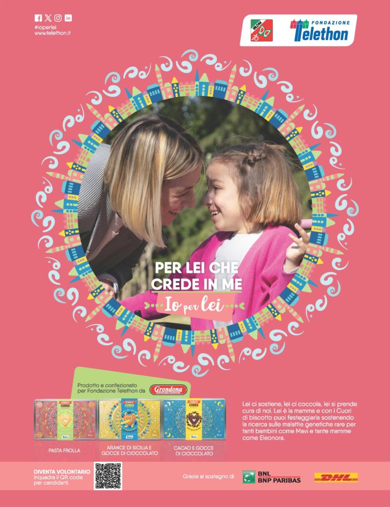 La campagna conta, inoltre, sul sostegno di importanti partner come BNL BNP Paribas e DHL, da sempre affianco della ricerca, che contribuiscono alla diffusione e al successo dell’iniziativa.