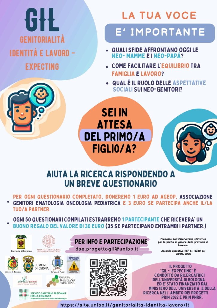 Il Progetto GIL – Genitorialità, Identità e Lavoro, ideato da tre ricercatrici del Dipartimento di Scienze Economiche dell’Università di Bologna, nasce grazie a due finanziamenti PRIN ed è promosso dall’Osservatorio Statistico per la parità di genere della Provincia di Ravenna.